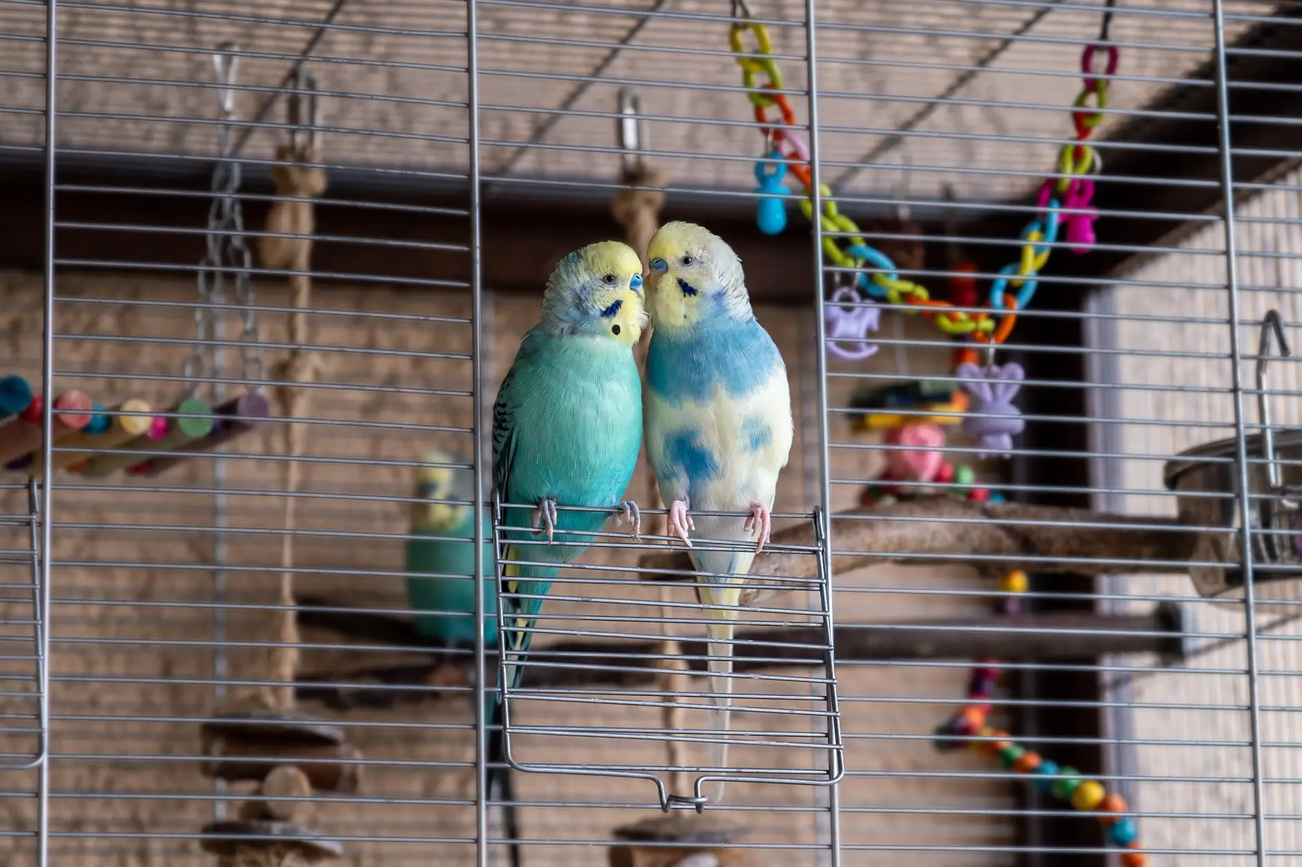 Si vous décidez d’apporter un nouveau copain à votre perruche, ne les mettez pas immédiatement ensemble dans la cage et ne vous attendez pas à ce que tout soit comme avant. Afin de respecter un temps de quarantaine, l’idéal est de garder les deux perruches dans des cages séparées pendant un mois. De cette manière, elles pourront s’habituer aux appels de l’autre à distance avant tout contact physique et donc sans risque de transmission d’une quelconque maladie.